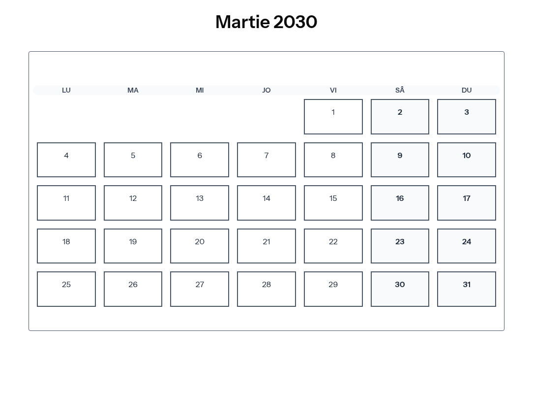 Calendar Martie 2030